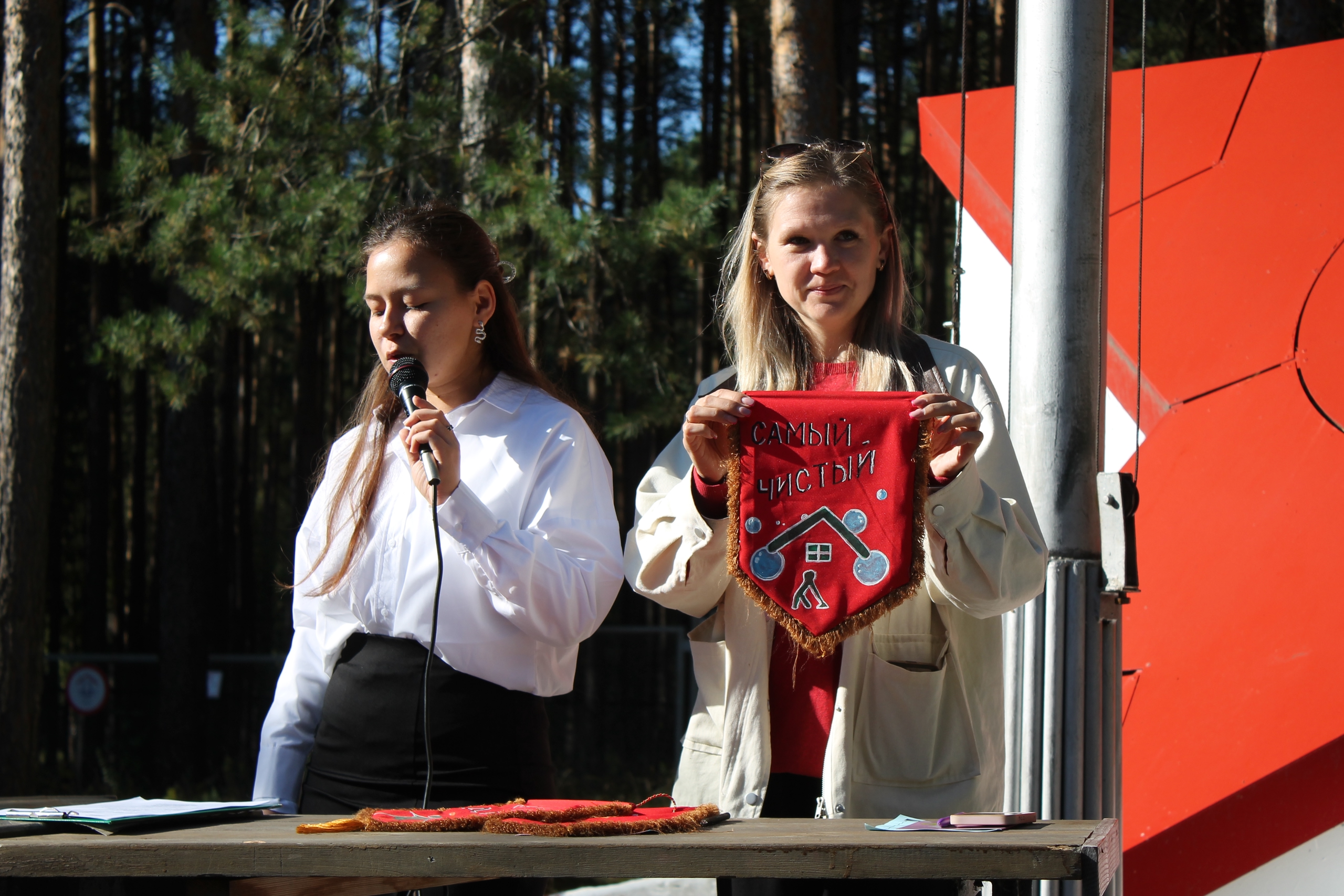Также на линейке, как и каждый день, были выданы вымпелы самому чистому, спортивному и дружному отрядам, и победители турнира по пионерболу были награждены грамотами!